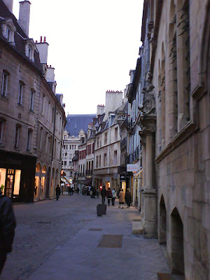Posting myself in Mainz near the Autobahnzubringer was easy. A man who I estimated in his mid 4o’s picked me up with his Sedan. I saw he had a KL-licence plate, which means Kaiserslautern, which meant for me the right direction. He told me he had his own company and worked for the Americans. What he did exactly didn’t interest me. But as he mentioned the US-Navy, I had to ask him about Obama. It was Obama-day, after all. In his personal opinion, his stressed the ‘personal’ part, it was a bit strange that a black man was elected. Almost every CEO and pilot is white, he said. Then he went on talking about Turkish people in Germany. He had a Turkish employee who returned to his roots and didn’t integrate. He said that was a big problem. I don’t know if he had racist tendencies, let’s hope not. He dropped me of in Kaiserlautern at a gas station. There I could see some Obama and stay warm inside. After a while, and a lot of asking around, a young social worker in a VW-van took me to Ramstein, a Autohof near the Ramstein military base. Again, I was reminded of America, and of Obama’s inauguration. I walked around the parking lots, asked a lot of truck drivers because they usually enjoy company, and ended up in a brand new BMW two French guys had just bought because it is 10.000€ cheaper in Germany. They literally raced towards the border, enjoying the absence of speed limits in Germany. I saw a peek of 200 km/hour on the display. At the French side, they kept the law and drove 130 km/hour. We didn’t talk much. But we listened to the inauguration on the radio. I cried when Obama took his vow. The French guys lived in Troyes, which was a bit out of my route to Dijon, but that didn’t matter. At a parking I finally caught a ride to Dijon from a very nice couple in a comfortable car. They even dropped me off at the station of Dijon. I asked for the address of my friend’s place, which was la rue de Capuccines in the center of Dijon as I remembered from nine years ago, but nobody at the accueil knew it. They gathered around a plan de Ville and finally, with the help of the internet, they found it.
